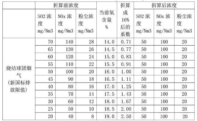 《鋼鐵燒結(jié)、球團(tuán)工業(yè)大氣污染物排放標(biāo)準(zhǔn)》(GB28662-2012)修改單規(guī)定的基準(zhǔn)含氧量,自2017年10月1日起執(zhí)行。根據(jù)編制說(shuō)明,燒結(jié)和球團(tuán)焙燒煙氣基準(zhǔn)含氧量定為16%。則鋼廠燒結(jié)和球團(tuán)實(shí)測(cè)焙燒煙氣的大氣污染物排放濃度,應(yīng)換算為16%條件下的排放濃度,并以此作為判定排放是否達(dá)標(biāo)的依據(jù)。