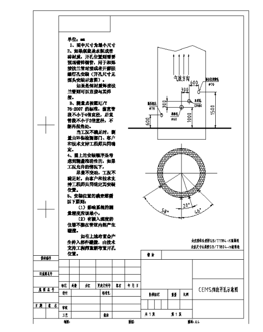2、開(kāi)孔的位置位于煙囪直徑的四倍處,開(kāi)相應(yīng)的4-5個(gè)孔,如圖