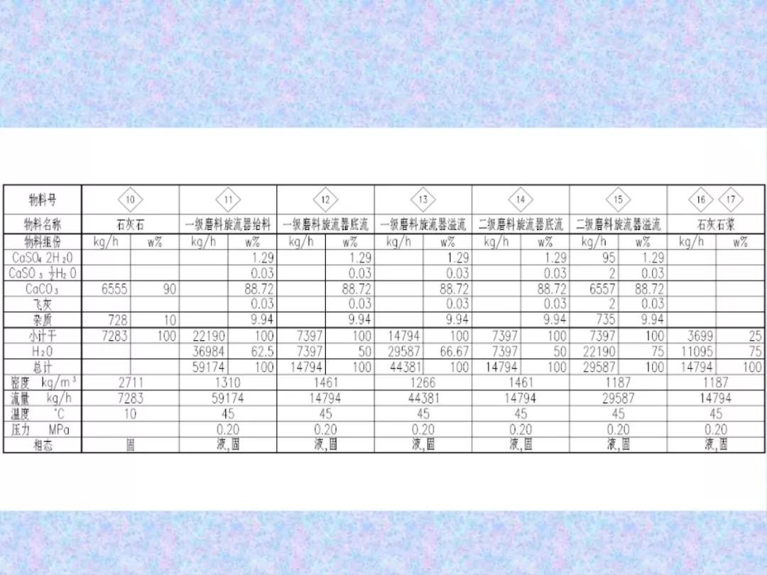 1、物料平衡計算:建立物料平衡表