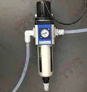 3、因壓縮空氣的品質(zhì)很差,含水含油很大,原先的空氣過濾器不能滿足過濾的要求,樣氣中含水率高與其也是有關(guān)系的,而且油份容易附著在探頭上造成積灰,影響抽氣量,嚴(yán)重時(shí)甚至無法抽下來空氣。因此我們在取樣探頭反吹壓縮空氣管道上加裝氣液分離器,該氣液分離器可以過濾掉壓縮空氣中的水份和油份,不讓探頭反吹時(shí)將壓縮空氣中的水和油吹入附著在取樣探頭內(nèi)。