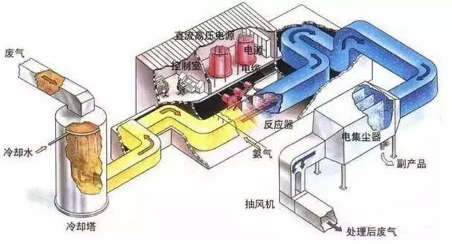用高能電子束照射煙氣,生成大量的活性物質(zhì),將煙氣中的SO2和氮氧化物氧化為SO3和二氧化氮(NO2),進(jìn)一步生成H2SO4和硝酸(NaNO3),并被氨(NH3)或石灰石(CaCO3)吸收劑吸收