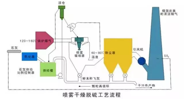 半干法脫硫包括噴霧干燥法脫硫、半干半濕法脫硫、粉末一顆粒噴動(dòng)床脫硫、煙道噴射脫硫等。