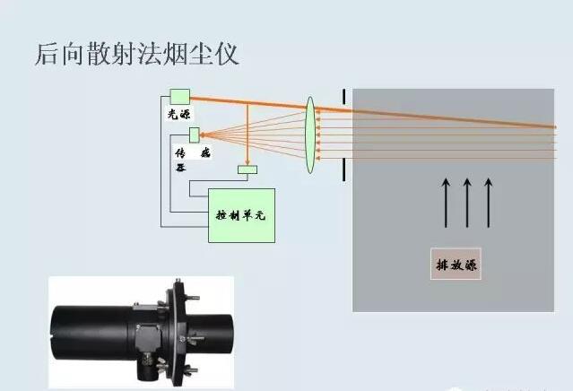 煙氣在線監測中煙塵儀的前后散射示意圖